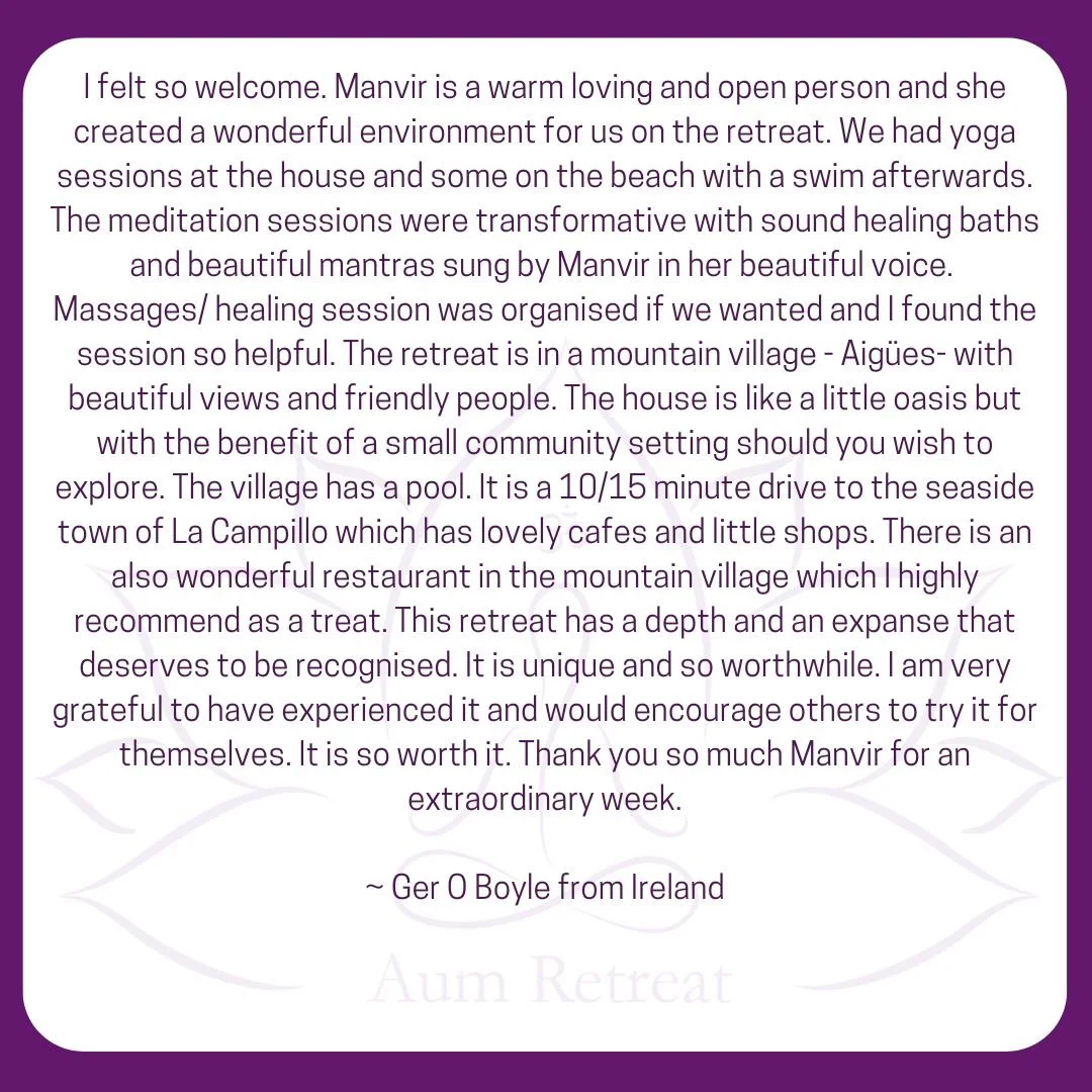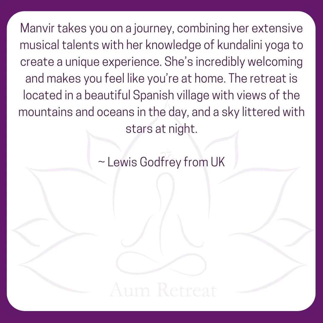Manvir is an internationally renowned mantra artist, Kundalini Shakti yoga and meditation guide, and founder of AUM Retreat. With a deep-rooted passion for music and spirituality, Manvir has dedicated her life to sharing the transformative power of sound and energy.